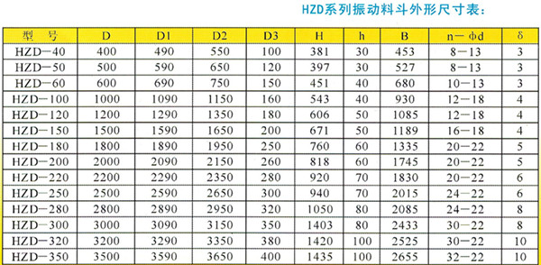 HZD系列振动料斗是一种与料仓口刚性联接的给料设备。料仓下部直接安装该机,可使仓内物料顺利排放,防止仓内物料因压力、内摩擦等原因造成的起拱、架桥、阻流等问题。我厂制造的HZD型型振动给料斗,利用振动电机激振,动力消耗少,破拱清仓性能好,适用物料范围广,规格品种齐全,广泛适用于煤炭、电力、机械、化工、建材、冶金、矿山、轻工、食品、粮食、医药、交通运输等行业。